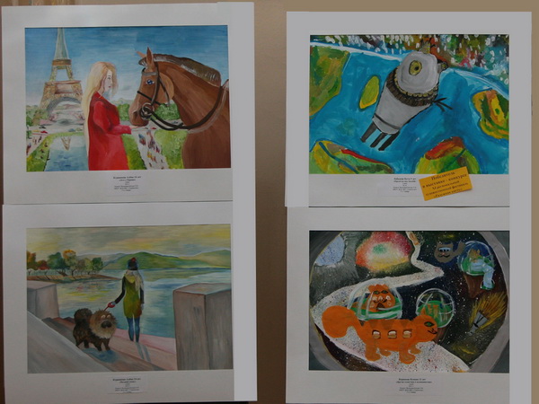 На втором этаже Центра юные художники, воспитанники изостудии «Палитра», представили свои работы в разных техниках.