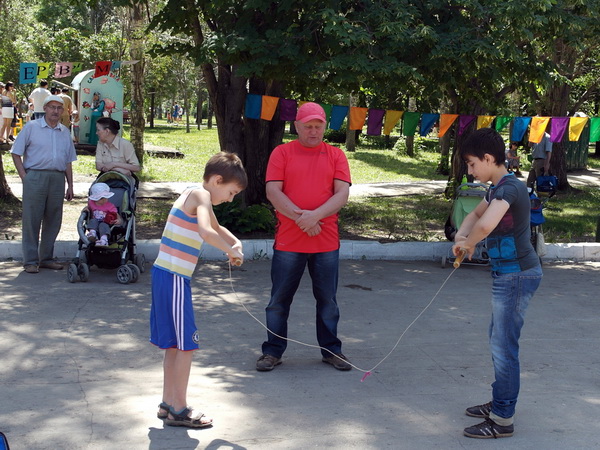 Особый восторг вызвала площадка, где педагог Дудкин В.М. проводил спортивные состязания «Быстрее, дальше, выше!». Участники делились на команды и в различных этапах соревнований смогли показать свою ловкость и сноровку.