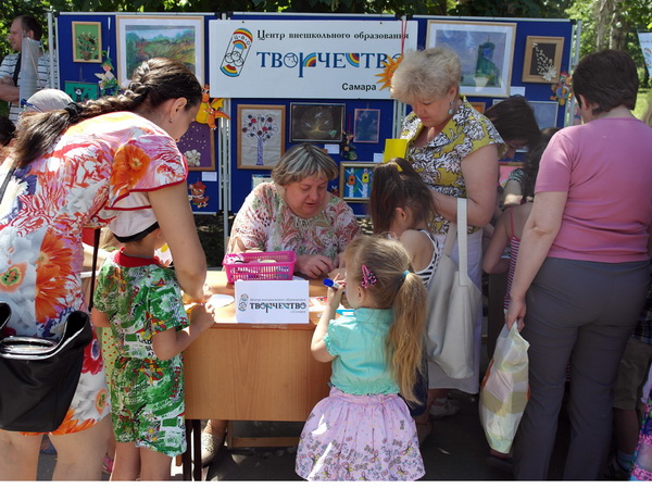 В парке Победы воспитанники и педагоги ЦВО «Творчество» приняли участие в организации различных творческих площадках, тем самым помогая создавать праздничную атмосферу.