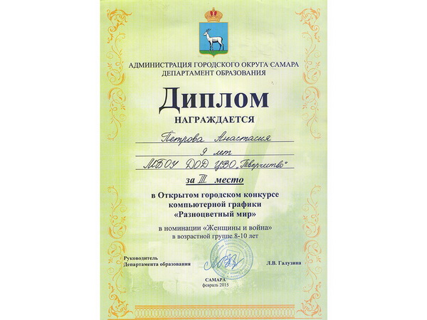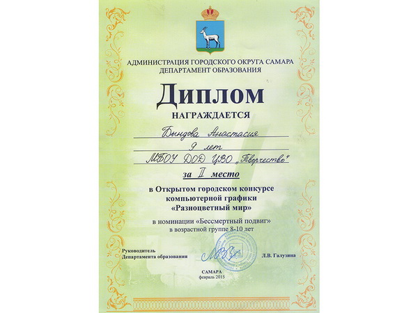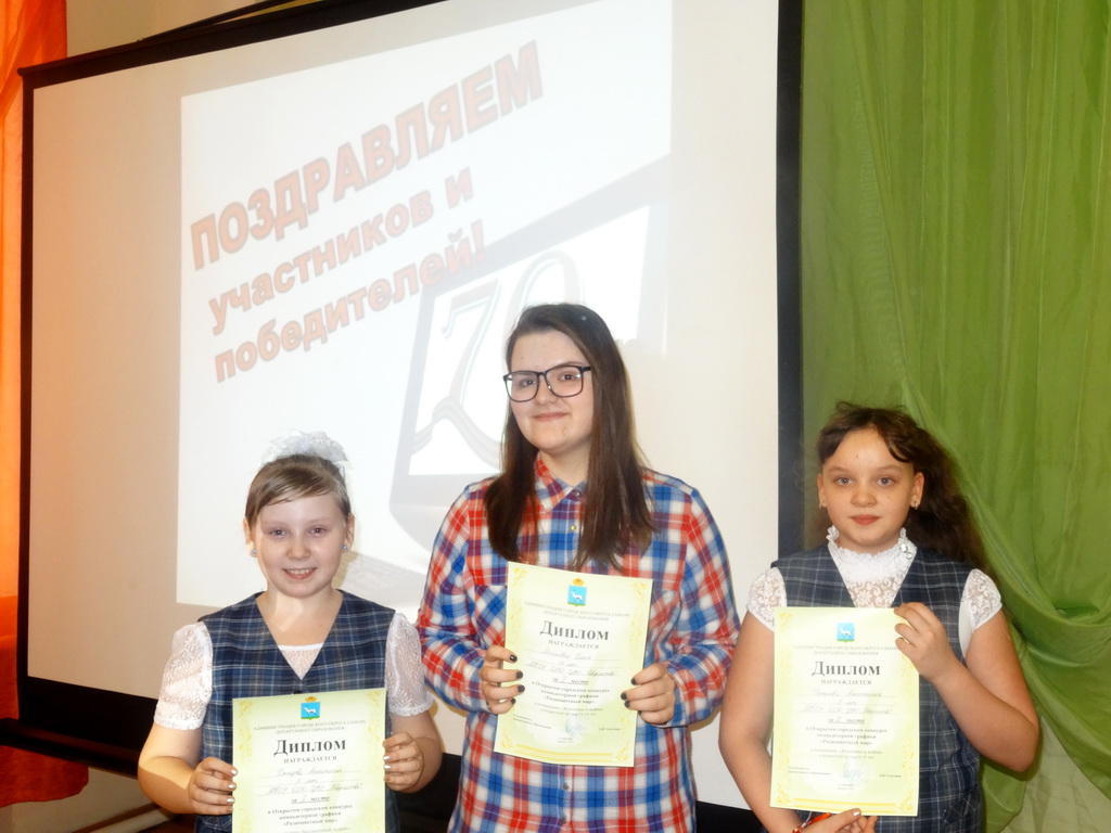 В номинации «Бессмертный подвиг» Бындова Анастасия была награждена дипломом за II место. В номинации «Женщина и война» также дипломом за II место награждена Масливец Олеся, III место в этой же номинации заняла Петрова Анастасия.