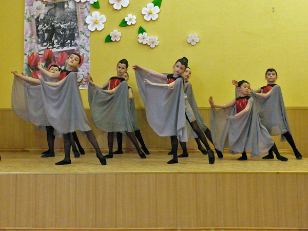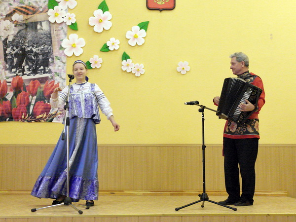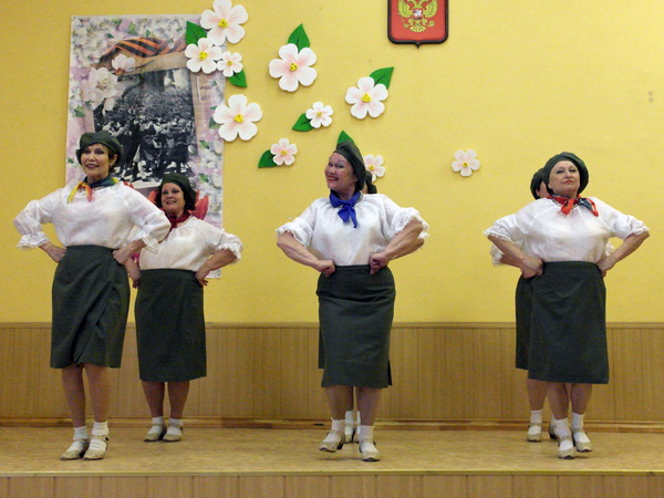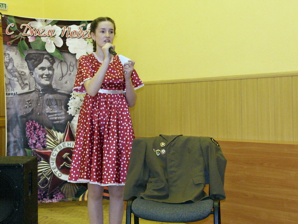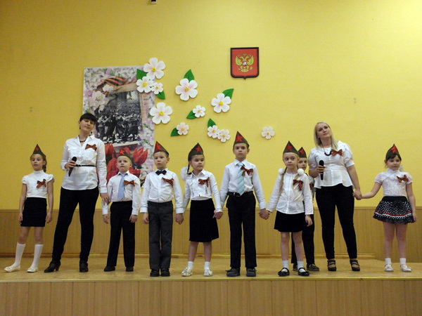Порадовали своим прекрасным выступлением учащиеся детского объединения «Посиделки» Бындова Анастасия с песней «Хотят ли русские войны» и Зайцева Диана с песней «Майский вальс» (руководитель Барсукова С.А. концертмейстер Дерягин С.Н.), учащиеся вокального ансамбля «Звезды надежды» Макеева Виктория с песней «Партизанский сынок», Моисеева Людмила с песней «Боевые ордена», Егорова Полина с песней «Письмо, пришедшее с войны» и Лопарев Николай с песней «Три танкиста» (руководитель Гончарова Н.И.). Руководителями хореографических коллективов Артюховой Т.И. и Мелиховой Н.И. были подготовлены новые композиции танец «Снегири» и танец «Майский вальс».