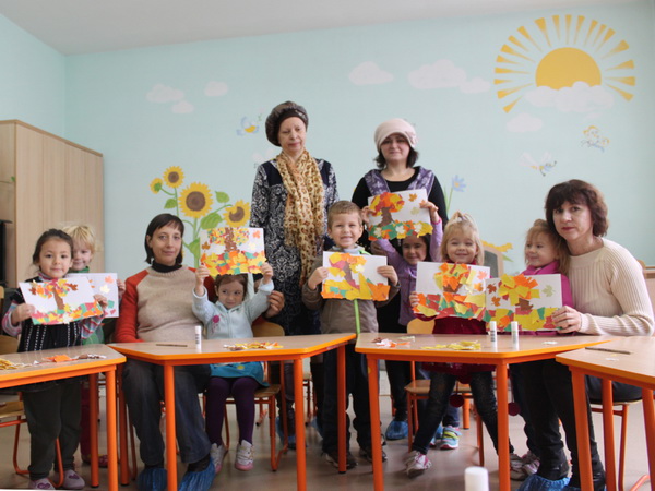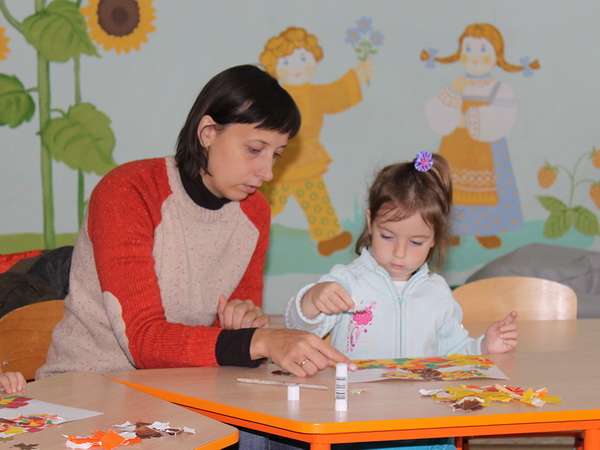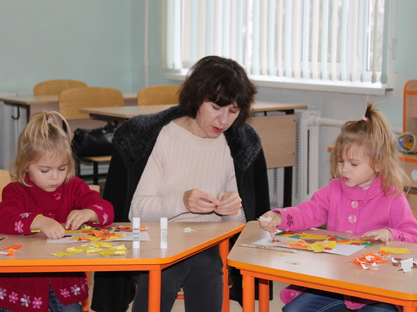 Вторая часть мероприятия была творческой. Ребятам вместе с мамами нужно было создать осенний пейзаж методом обрывной аппликации. Обрывная аппликация не требует работы с ножницами, и, что очень важно для малышей, позволяет получить быстрый результат.