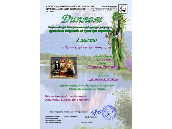 Всероссийские детско-юношеские конкурсы «В Урале Русь отражена» и «Для папы, для мамы» проходили с марта по май 2017 г. Научный руководитель конкурса – Заслуженный работник искусств, профессор А.А. Емельянцев. В конкурсе приняло участие более 1600 работ.