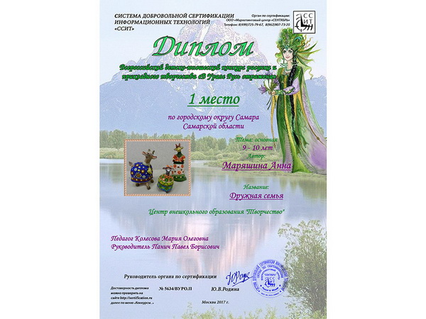 - Митрофанова Виктория (Мастерская «Бисерные переливы», педагог Гмызова Н.В.) - дипломом за 2 место;