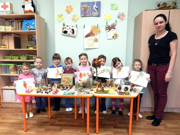 В ходе проекта у детей формировалось целостное представление об одном из самых красивых времён года – осени. На протяжении двух недель ребята знакомились с картинами известных художников, музыкальными и художественными произведениями композиторов, поэтов, писателей. Было проведено много познавательных и творческих занятий. Ребята наблюдали за осенними явлениями природы, узнали от своих педагогов о том, как животные готовятся к зиме, знакомились с сезонной работой в садах и огородах, разучивали стихотворения, рисовали, лепили, делали различные поделки, с увлечением играли в дидактические и подвижные игры. Заключительным этапом проекта стал конкурс семейных поделок, по итогам которого была оформлена выставка творческих работ.