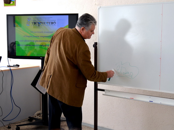 Особый интерес у присутствующих вызвала интерактивная игра «Построение государственно-частного партнерства в УДО», которую проводил директор Центра Панич Павел Борисович. Образность и наглядность такой формы работы позволила гостям Центра не только узнать принципы проектирования и планирования государственно-частного партнёрства (ГЧП), но и попробовать свои силы на создании проекта ГЧП в дополнительном образовании.