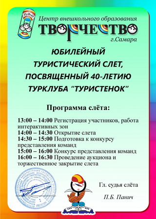 Форма Слета позволила участникам мероприятия пообщаться с любимым педагогом, друг с другом, окунуться в свое детство и увидеть современный «Туристенок», который продолжает свою деятельность, растет, крепнет и развивается.