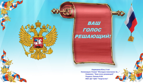 - Плакат «Молодое поколение ЗА...», «Плакат-приглашение на выборы»,