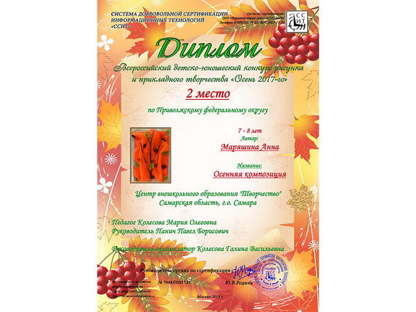 Всероссийского детско-юношеского конкурса «Осень 2017»