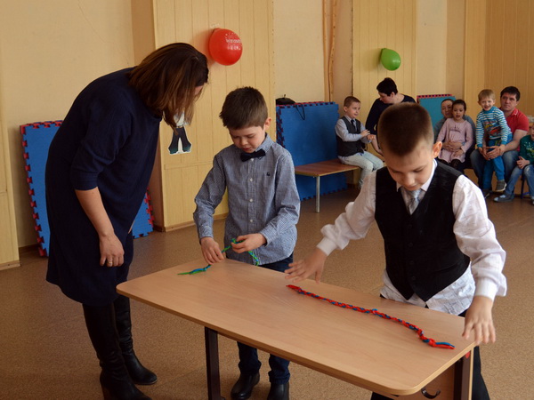 В начале праздника дети прочитали поздравления в стихах для мам, пап и бабушек. Затем все участники разбились на две команды и приняли участие в шуточных конкурсных эстафетах. Как поется в известной песне: «неразлучные друзья – взрослые и дети» дружно отгадывали загадки, вязали морские узлы, угадывали и пели песенки и получали звёзды за свои старания. Каждая команда старалась набрать максимальное количество звёздочек и победить.