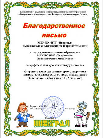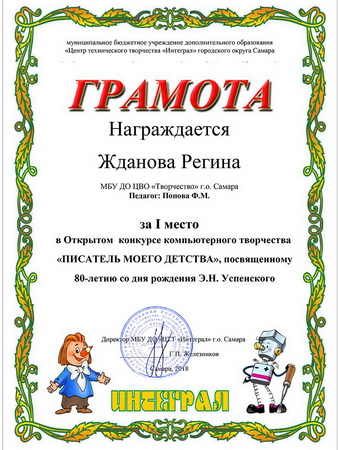 В весенние каникулы с 23.03.2018 по 30.03.2018 проходил Открытый конкурс компьютерного творчества «Писатель моего детства», посвященный 80-летию Эдуарда Николаевича Успенского.