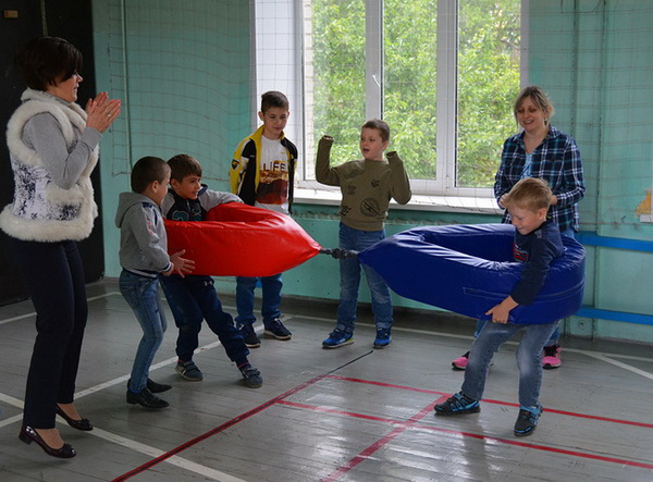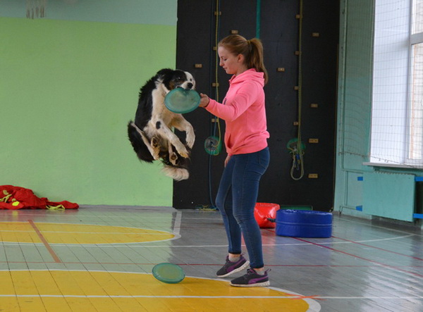 В спортивном зале разгорелась нешуточная борьба, ведь прийти к финишу первым в весёлых стартах хотелось каждому! Ребята соревновались командами, болели друг за друга, помогали преодолевать препятствия. Веселья добавило зажигательное выступление воспитанницы детского клуба любителей собак «Унипес» Ковалевой Александры и ее четвероногого друга бордер-колли Айс.