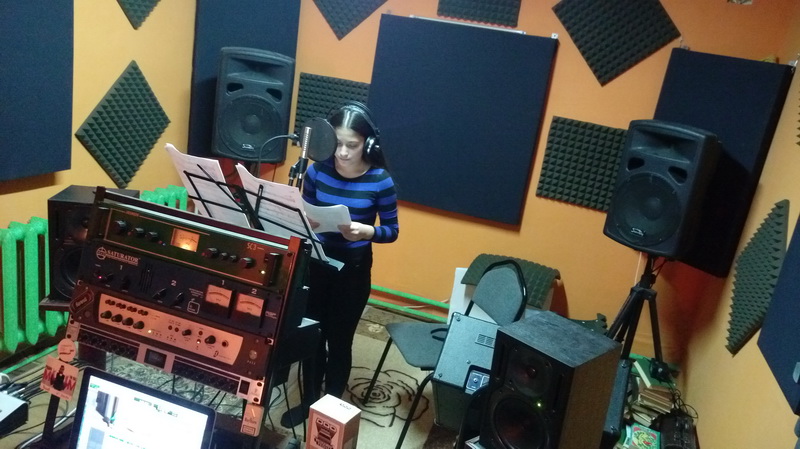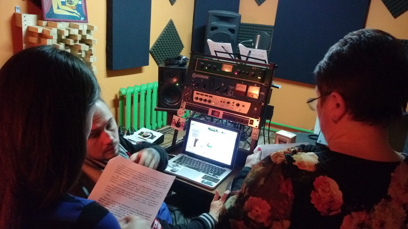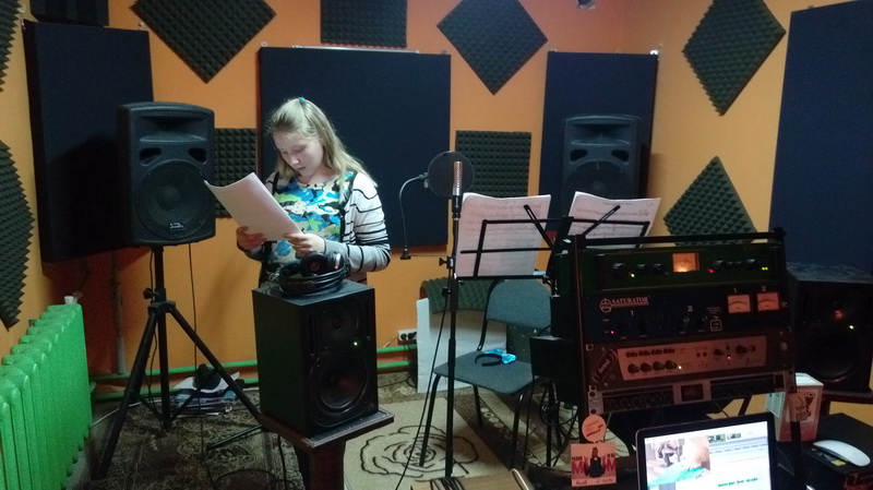 Затем мы поехали на профессиональную студию звукозаписи Music Lab. Там со звукорежиссером шаг за шагом наши девушки в наушниках озвучивали серию мультфильма. Одна серия длится 6-7 минут, а озвучка - длилась 2 часа. Таким образом, наши дети познакомились с нелегкой работой артистов радио и диджеев, а также работой звукорежиссера. На озвучку второй серии мультфильма «Маша и Медведь» нам пришлось приезжать второй раз, но там уже процесс озвучивания прошел быстрее.