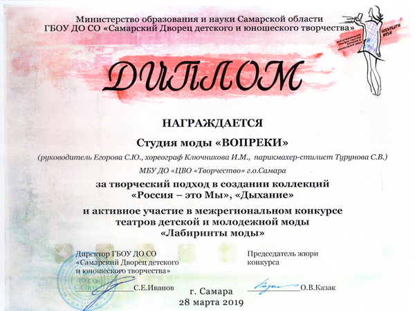 28 марта 2019 года в ДК «Металлург» прошел XXI межрегиональный конкурс театров детской и молодёжной моды «Лабиринты моды».