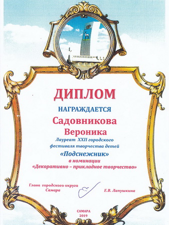 В лагере «Волжский Артек» прошел заключительный этап городского фестиваля детского творчества «Подснежник», в котором приняли участие более 40 человек, среди которых и учащиеся детских объединений «ЦВО «Творчество»: Чертков Матвей (Мастерская деревообработки «Интерьер», педагог Колесов О.И.), Давыдова Алена (детское объединение «Фитодизайн», педагог Колесова М.О.), Мостовая Мария (Мастерская «Бисерные переливы», педагог Гмызова Н.В.), Садовникова Вероника (Школа девочек «Василиса», педагог Кутенина И.Ю.). Все они стали лауреатами фестиваля!