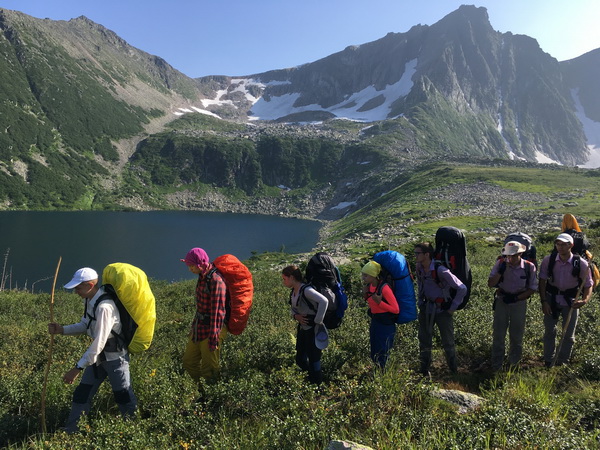 Но все это было только разминкой перед главным мероприятием лета – походом по горному хребту Кузнецкий Алатау в Кемеровской области. Турклуб «Туристенок» не был в этих местах более 10 лет. Для того чтобы у каждого ребенка была возможность увидеть Алтай, удовлетворить свои спортивные и краеведческие интересы, походная группа разбилась на две команды. Первая, в составе которой были туристы от 1,5 до 65 лет, встала базовым лагерем в районе приюта «Снежный Барс» и совершала ежедневные радиальные выходы, в том числе восхождение на пик Поднебесный. Вторая подгруппа прошла поход второй категории сложности, преодолев за 7 дней более 100 км и посетив такие удивительные места как водопады Золотой долины, озеро Выпускников, Караташский перевал. За дни похода было спето несколько десятков песен, съедено более 10 кг черники, стоптано несколько пар ботинок.