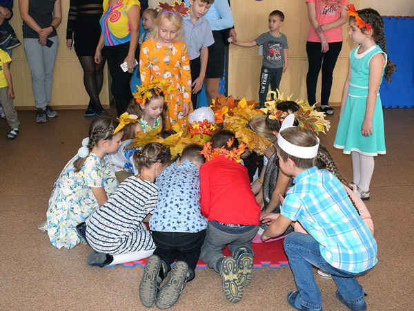 Группы «Солнышко», «Дюймовочка» и «Колокольчик» поочередно посетили станции «Осенние мелодии», «Танцевальная полянка» и «Осенние сюрпризы», где выполняли различные творческие задания. Ребята пели песни, исполнили задорные танцы и дружно играли в веселые игры. Каждая группа за выполненные задания получала части единого пазла, всего набралось 9 деталей, из которых старшие ребята сложили картинку с надписью «Осень». Конечно же, все малыши догадались, что за Тайная гостья к ним пришла! Осень собрала всех в большой хоровод и спела с дошколятами песню про урожай, а после угостила каждого сочным и ароматным яблочком! На этом праздник не закончился. После прохождения квеста детей и их родителей ждал спектакль «Царевна-лягушка», подготовленный школьниками из ГБОУ Самарской области «Школа интернат № 17 им. Т. С. Зыковой для обучающихся с ограниченными возможностями здоровья городского округа Самара».