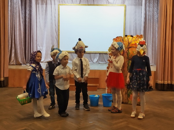 В начале праздника в гости к детям пришла золотая Осень с любимыми мультипликационными героями - Чебурашкой и Шапокляк. Дети с радостью выступали перед героями праздника и родителями: они рассказывали стихи, отгадывали загадки, пели, считали, играли в интересные игры на внимание и быстроту реакции.