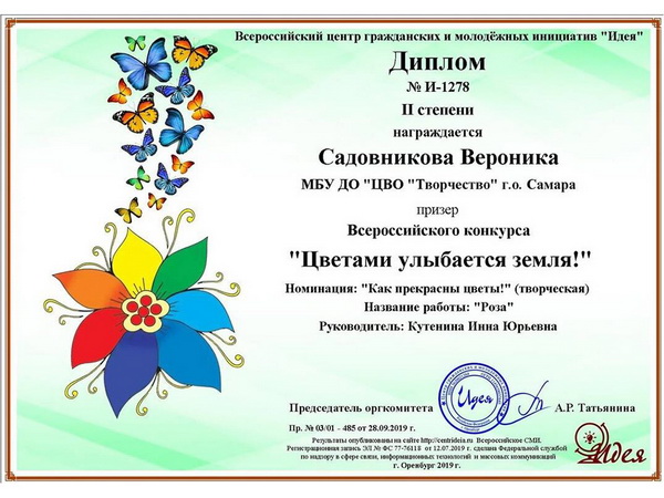 15.11.19 г. подведены итоги Всероссийского конкурса «Цветами улыбается земля».