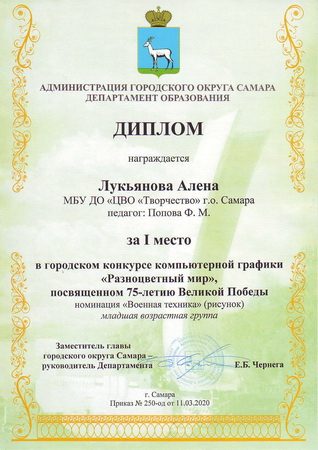 - Диплом I степени – Лукьянова Алена, Рожков Владислав.