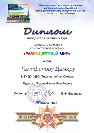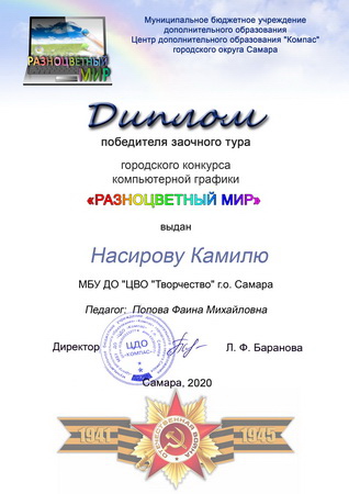 - Диплом победителя заочного тура – Шишков Даниил, Чараева Дарья, Насиров Камиль, Крупич Даниил, Галифанов Дамир.