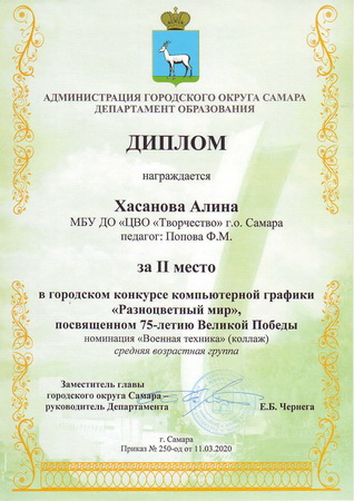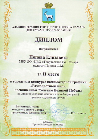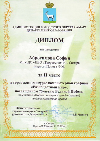 - Диплом II степени – Абросимова Софья, Бындова Анастасия, Попова Елизавета, Хасанова Алина, Савичев Максим