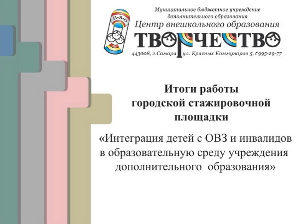В 2020 году Центру внешкольного образования «Творчество» был присвоен статус городской стажировочной площадки по теме «Интеграция детей с ОВЗ и инвалидов в образовательную среду учреждения дополнительного образования» (приказ Департамента образования Администрации г.о. Самара № 1704-од от 18.12.2019 г.)