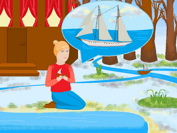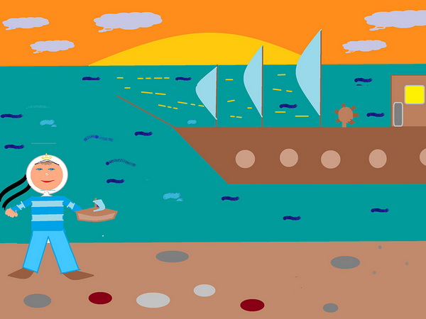 Ребята с интересом погрузились в эту тему и нарисовали красивые парусники, надежные военные корабли и подводные лодки и даже изобразили Петра I с первым кораблем, а также создали коллажи и плакаты.