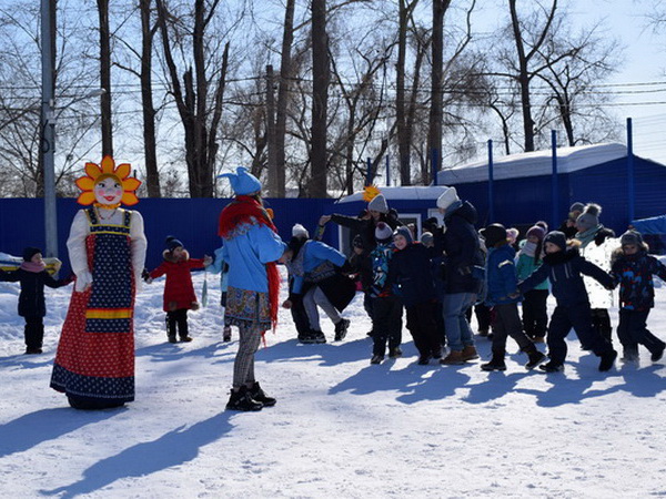 Широкая Масленица – это один из самых любимых русским народом праздников. Провожать Зиму и встречать Весну ребятам помогали сказочные герои – Матрешки, Скоморохи и Баба-Яга. Все вместе водили хороводы, танцевали зажигательные танцы народов мира, играли в народные дворовые игры. Все ребята с удовольствием перетягивали канат, поиграли в эстафеты, испытали себя на быстроту и меткость, ловко проходя станцию за станцией, которые расположились на спортивной площадке.