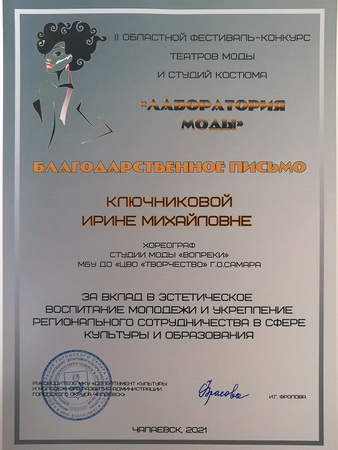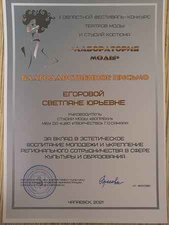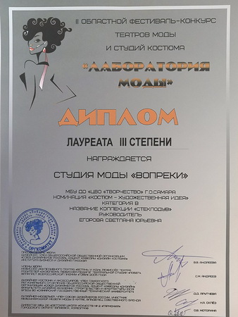 Обучающиеся студии моды «Вопреки» были награждены дипломами лауреата II и III степени, руководителям детских объединений были вручены благодарственные письма.