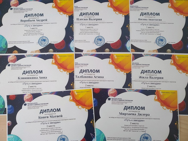 Защищая свои семейные творческие проекты, дети делились с друзьями и педагогами историей их создания от задумки до готового результата, и, конечно, получили дипломы победителей выставки! Лучшие работы были отправлены на Всероссийский детский конкурс декоративно-прикладного творчества «Путь к звездам», в котором ребята заняли первые и вторые места!