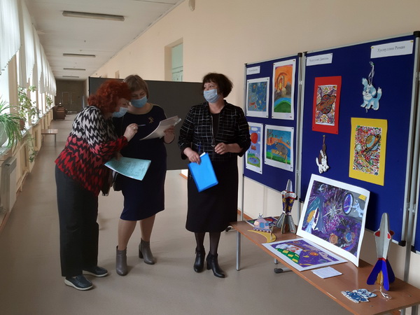 Участники выставки представили свои работы в техниках деревообработки, живописи, начального технического моделирования, фитодизайна на космическую тему.