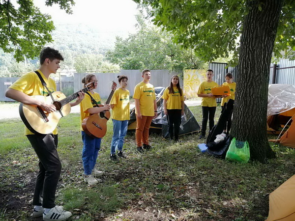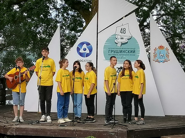 Мы приехали 2 июля, поставили палатки, репетировали. А вечером в прямом эфире состоялся концерт детских коллективов и наши ребята Родионов Лев, Карпаев Матвей и Моисеев Илья сольно исполнил песни Владимира Высоцкого и Юрия Визбора.