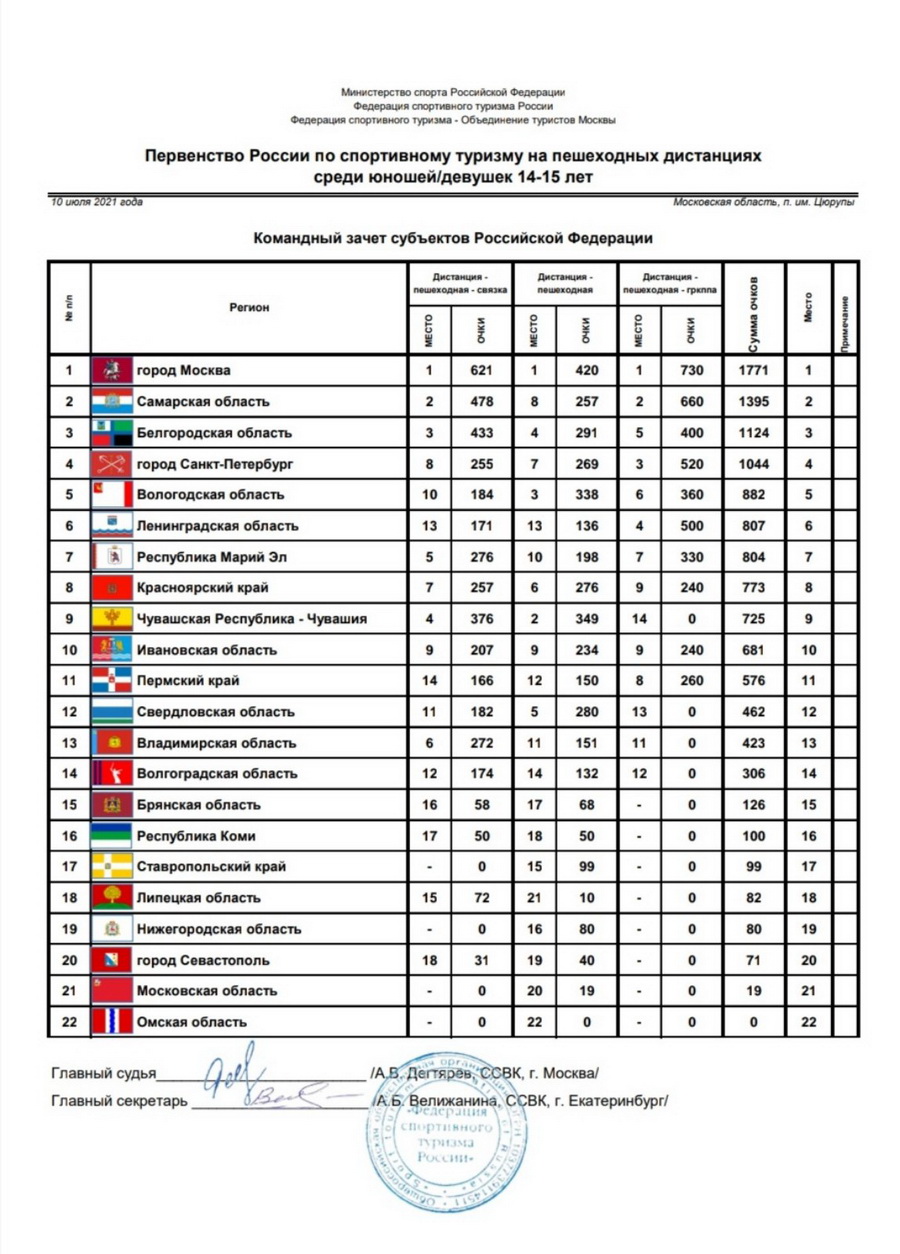 11 июля 2021 г. в Московской области в п. Цюрупы закончилось Первенство России по спортивному туризму на пешеходных дистанциях.