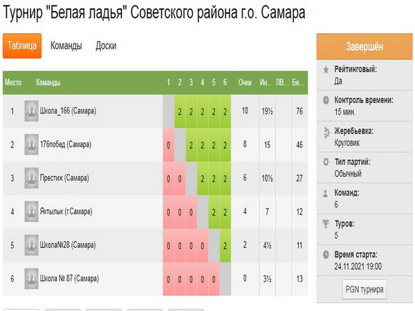По итогу разыгранных партий: