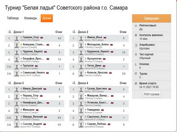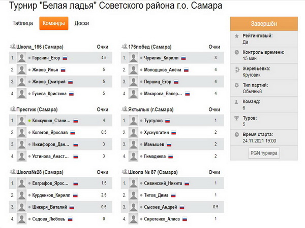 Турнир прошел насыщенно! Было разыграно много интересных комбинаций, неожиданных ходов и атак на поле соперников. По итогам проведённых партий была определена лучшая команда, которая будет представлять Советский район на следующем этапе соревнований - городском турнире по шахматам «Белая ладья» в декабре этого года.