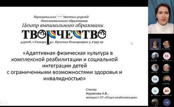 Александра Владимировна в своем докладе рассказала о методических аспектах организации работы Отдела реабилитации нашего Центра и роли адаптивной физической культуры в комплексной реабилитации и социально-интеграции детей с ОВЗ на примере программ «Адаптивная аэробика», «Физическое воспитание для дошкольников», «Анималотерапия», «ОФП-Старт», «Клуб путешественников», «Фрисби-кидс».