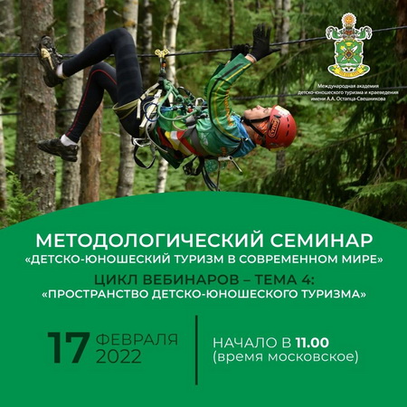 17.02.2022 г. в целях повышения квалификации и ознакомления с новыми векторами развития детского и не только туризма в Российской Федерации педагоги детского объединения турклуб «Туристенок» приняли участие в Методологическом семинаре «Детско-юношеский туризм в современном мире». Цикл вебинаров – Тема 4: «Пространство детско-юношеского туризма». Семинар был организован Международной общественной организацией