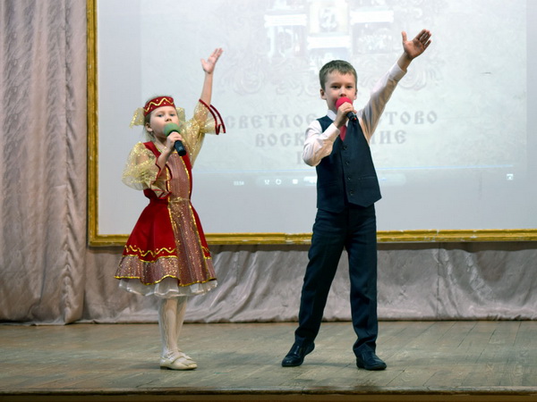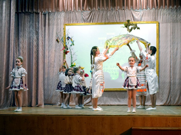 Концертная программа Городского фольклорного праздника не оставила ни одного зрителя в зале равнодушным, ведь на сцене выступали лучшие коллективы Центра: Хореографический коллектив «Мозаика», Объединение народной песни «Посиделки», Детский коллектив «Авторская песня», Вокальный коллектив «Очарование», Хореографический коллектив «Русичи». Между номерами ведущая праздника, Сухачевская Инна Игоревна, загадывала детям загадки, задавала вопросы про Пасху.