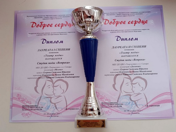 Студия моды «Вопреки» стали Лауреатами I и II степеней, награждены дипломами, кубком и сладким подарком от спонсоров конкурса.