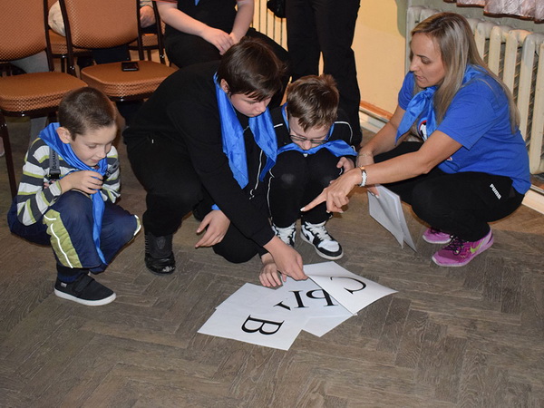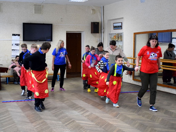 Далее участникам праздника раздали галстуки четырёх цветов, поделив их тем самым на четыре команды: «Киви», «Банан», «Слива» и «Красное яблоко». Ребята дружно представили свои команды и девизы. Затем, получив маршрутные листы, отправились на спортивные станции, где их уже ждали педагоги Центра. На каждой станции команды выполняли весёлые эстафетные задания, соревновались в ловкости, меткости, быстроте и силе. Дети бегали наперегонки в огромных ботинках, учились ориентироваться в спортивном лабиринте, проверяли свою меткость, метая дротики дартса и многое другое. Даже за небольшое время, проведённое вместе, ребята сдружились и поддерживали друг друга.