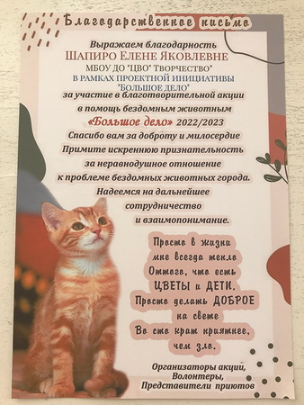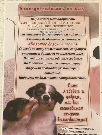 В нашем центре по сей день ведется активная работа над проектной инициативой 2022-2023 года «Больше дело», которая направлена на содействие в формировании фундаментальных основ добровольческой деятельности (с ориентацией на помощь бездомным животным) у жителей г.о. Самара.