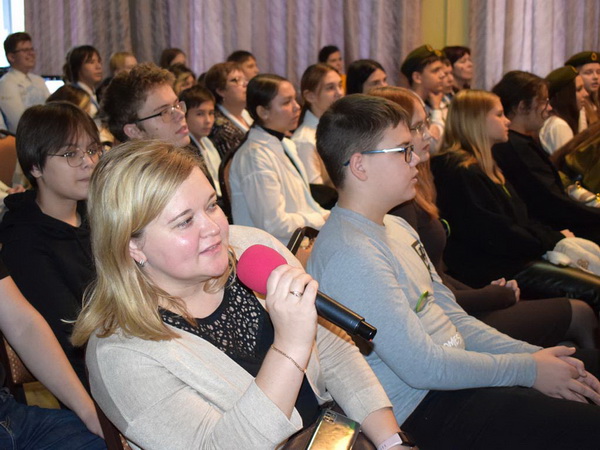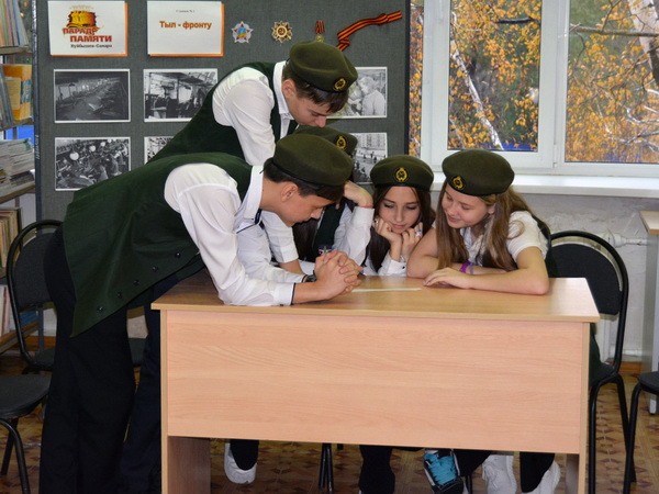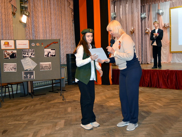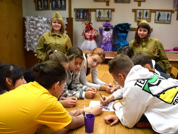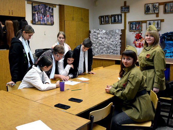 После прохождения всех станций, команды собрались в актовом зале и пели песни военных лет, пока подводились результаты квеста.