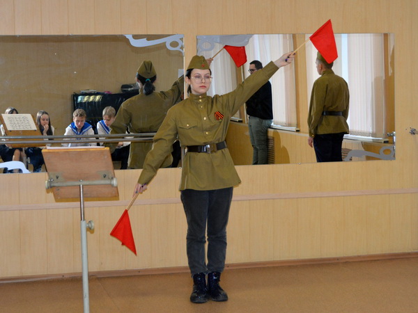 Станция № 4 – «Семафорная азбука». Одна из самых сложных станций, на которой детям было предложено с помощью семафорной азбуки расшифровать имя и фамилию человека, который сыграл большую роль в организации парада.