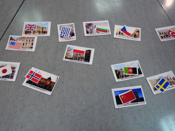 Станция № 2 – «Дипломатический корпус». Командам необходимо было найти сначала соответствие фотографий зданий посольств с флагом страны, его представляющего, а затем найти точку на карте города в соответствии с адресом и прикрепить туда карточку с изображением посольства и флага.