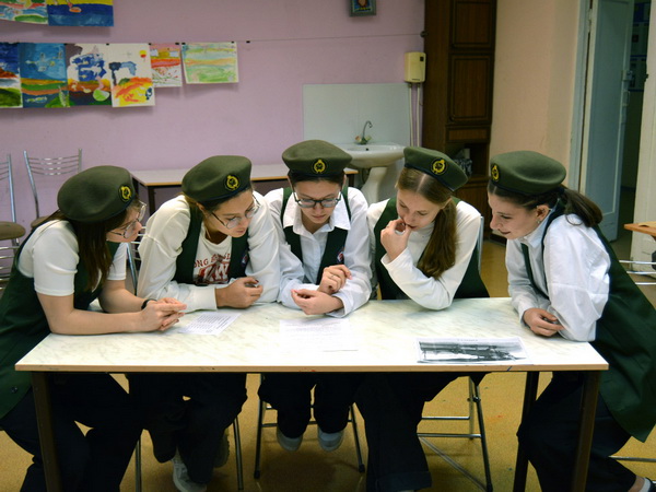 После прохождения всех станций, команды собрались в актовом зале и пели песни военных лет, пока подводились результаты квеста.