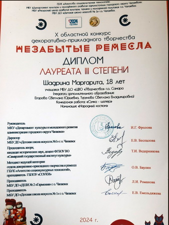 22.11.24 состоялось закрытие X Областного конкурса декоративно-прикладного творчества "Незабытые ремесла" в ДШИ 1 г.о. Чапаевск
