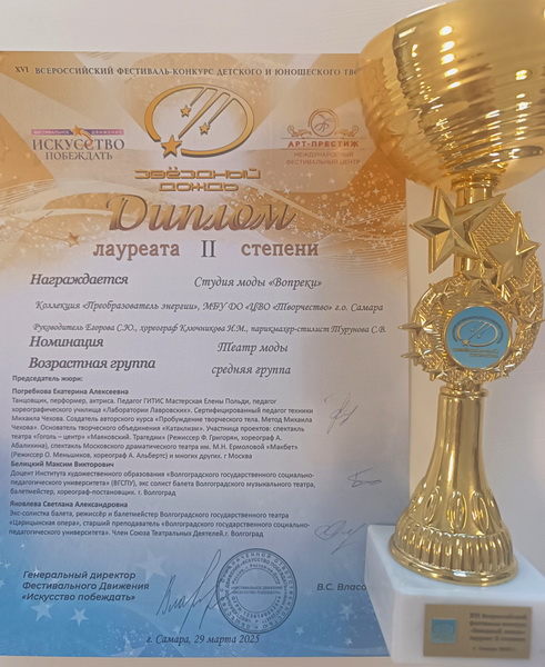 Студия моды «Вопреки» заслуженно получила диплом Лауреата II степени.