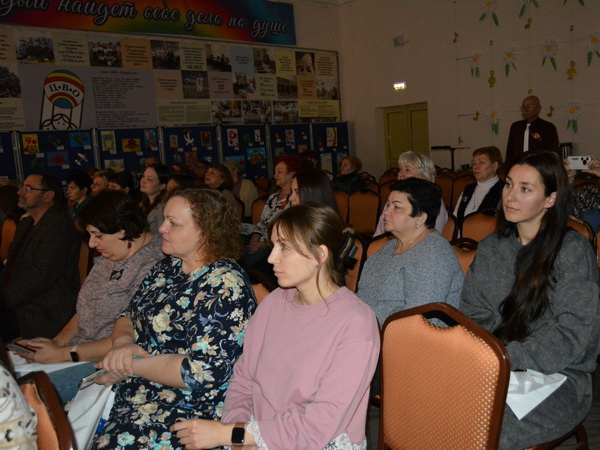 Директор Дворца Ветеранов Баранова Ольга Николаевна, депутат райсовета Советского района г.о. Самара, секретарь Совета ветеранов СВО Самары, представила собравшимся педагогам участников вокального коллектива «Клуб «Ретро», созданного в 2022 году на базе клуба ветеранов «Самарская мозаика», и огласила девиз встречи: «Поём песни Великой Победы!»