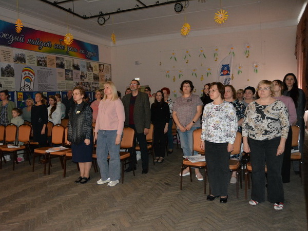 На улице черёмуховое похолодание и даже неожиданный апрельский снегопад, а в актовом зале Центра царит дружеская тёплая атмосфера. Нет слов о важности патриотического воспитания, привычно сопровождаемых компьютерными презентациями, зато звучат песни, хорошо знакомые с детства каждому из собравшихся, песни, которые так хочется подпевать вместе с исполнителями, песни, которые рождают эмоциональный отклик и от которых наворачиваются слёзы. А ещё – минута молчания, ради которой в едином порыве и без всякой на то команды встаёт весь зал…
